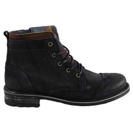 Bota de homem em camurça com cordões e fecho na parte interior do pé. Disponível em azul