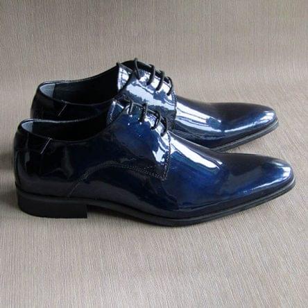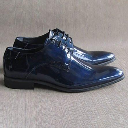Sapato clássico masculino em verniz ao seu dispor em preto ou azul. Um sapato em verniz em pele e fabricado em Portugal. Sapato com atacadores para que possa ajustar ao seu pé.