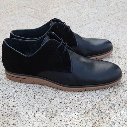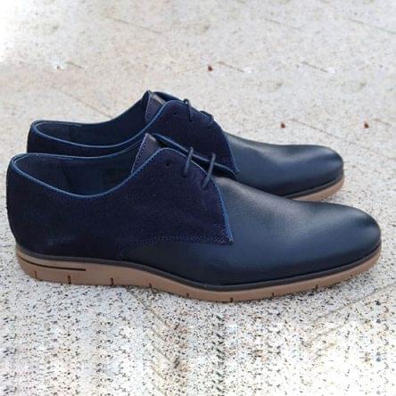 Sapato Homem em pele. Modelo disponível em azul ou preto. Sola em borracha.